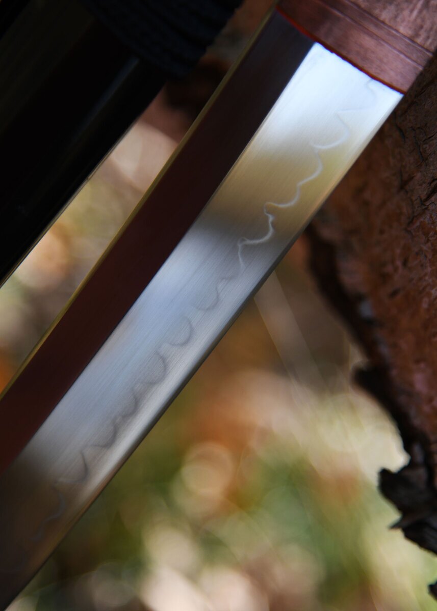 - Clay-tempered hamon: Differentieret hærdning skaber ikke kun et smukt mønster, men forbedrer også bladets strukturelle egenskaber.
