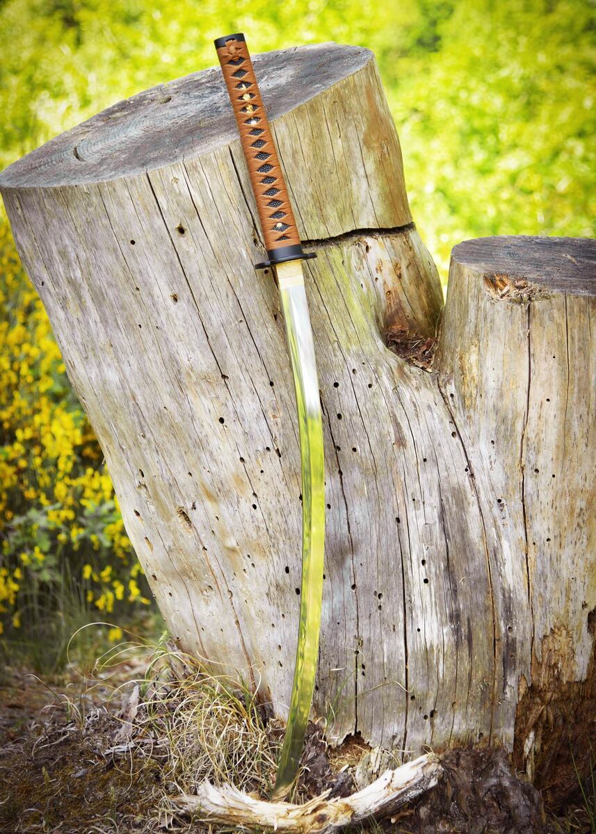 Med sin markante dybe sori (krumning på hele 36 mm) og ikoniske shobu zukuri-profil – uden klassisk kissaki, yokote eller boshi – leverer denne katana ekstremt hurtige træk og effektive snit, som var afgørende på slagmarken.