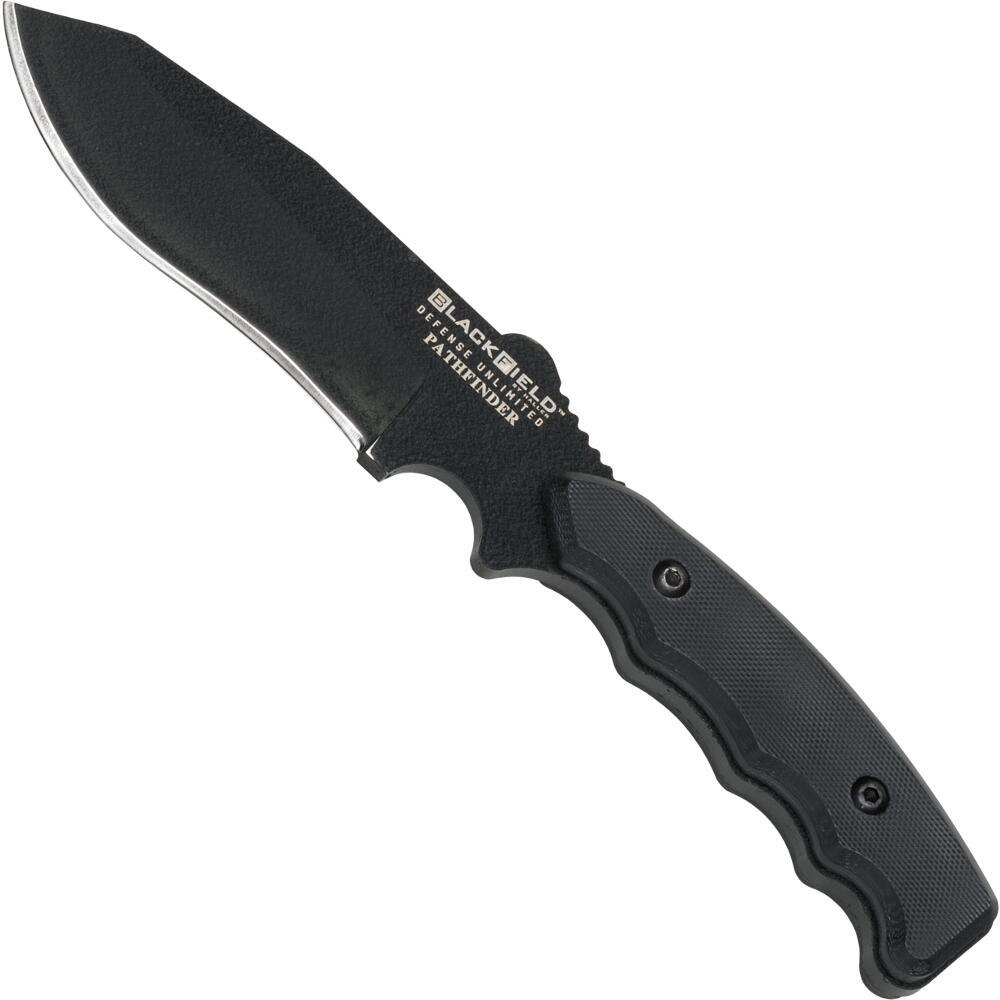 Denne taktiske kniv imponerer med sin bladtykkelse på 5 mm. Den sortbelagte klinge er lavet af 440 rustfrit stål. Det påskruede håndtag er lavet af  G10 og ligger sikkert i hånden. Nylonskeden tilbyder forskellige bæremuligheder og har en frontlomme.