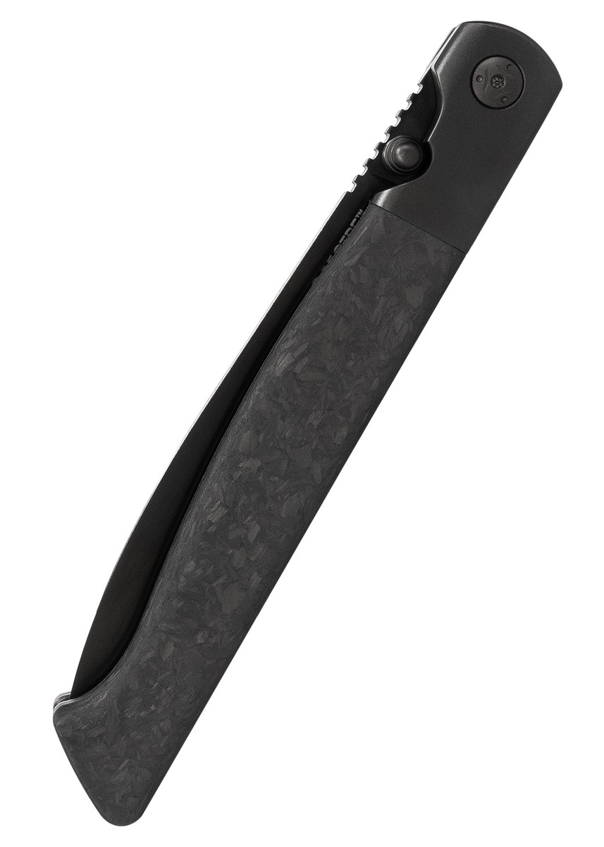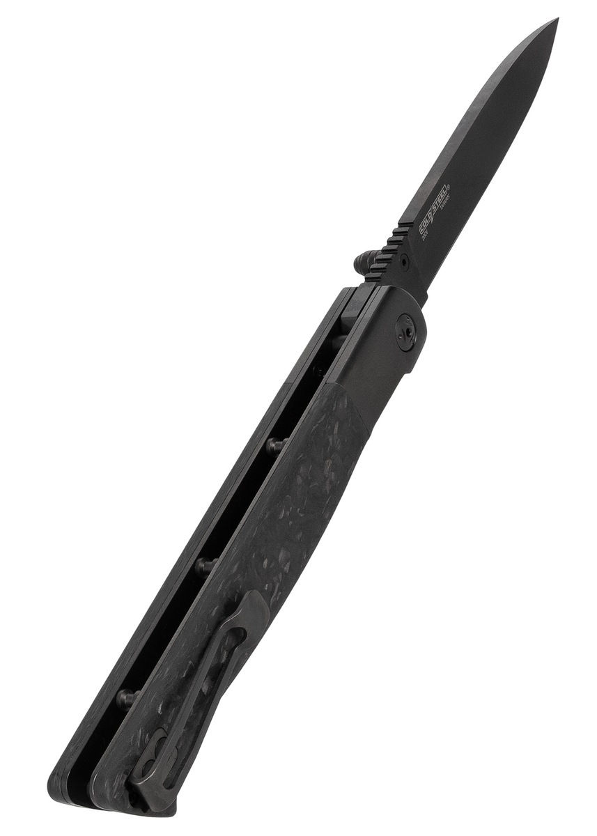 Kniven er udstyret med solide titaniumbolstre og et smukt håndtag i kulfiber, som giver fremragende styrke og lang levetid, selv under udendørs eventyr. Med en liner lock-mekanisme og en tommelstøtte er Spectre let at åbne og lukke, og det integrerede lommeclip gør den nem og sikker at bære.