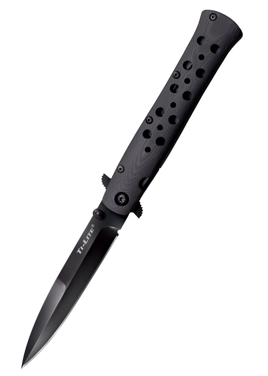 Cold Steel® Ti-Lite Foldekniv kombinerer klassisk 1950'er switchblade-stil med moderne teknologi. Med en 4'' klinge i CPM S35VN stål og sort DLC-coating, tilbyder den overlegen skæreevne, holdbarhed og korrosionsbeskyttelse. Det ergonomiske G-10 håndtag sikrer komfort og kontrol, perfekt til daglig brug og taktiske opgaver.