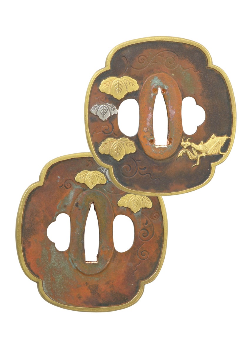 Den subtile, grønne silke ito (håndtagsomvikling) og den dybe, brune lakering af sayaen (skeden) skaber en elegant kontrast til de mørke kobber- og gulddetaljer på tsuba, fuchi, og kashira. Motivet med en knæler, der ligger på lur efter sit bytte, afspejler denne katanas indbyggede kraft og præcision.