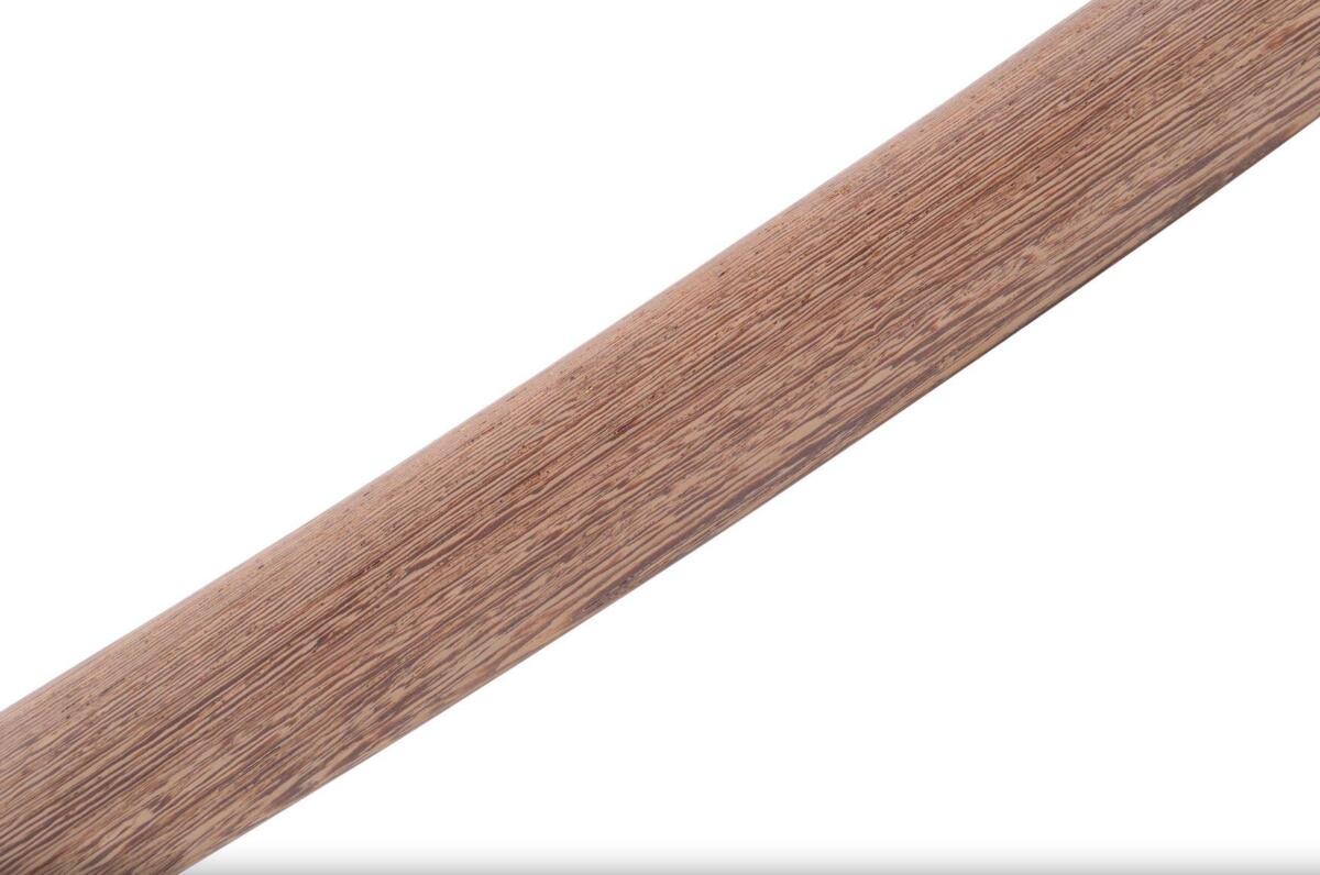 Vedligeholdelsesråd: Højkulstof 1065 stål giver en relativt hård klinge, ideel til skæretræning og mindre tilbøjelig til at blive sløv sammenlignet med 1045 middelkulstofstål (0,45% kulstof). Det anbefales dog ikke til træning klinge mod klinge. Husk at oliere klingen regelmæssigt for at undgå rust.