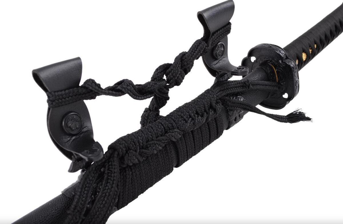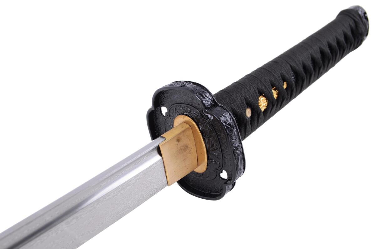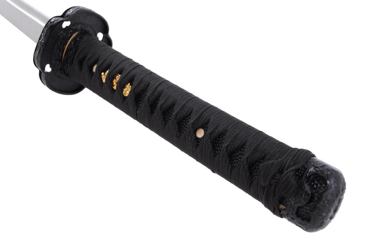 - Håndtag: Sort flettet Tsuka med strålehud og gylden Komainu indeni