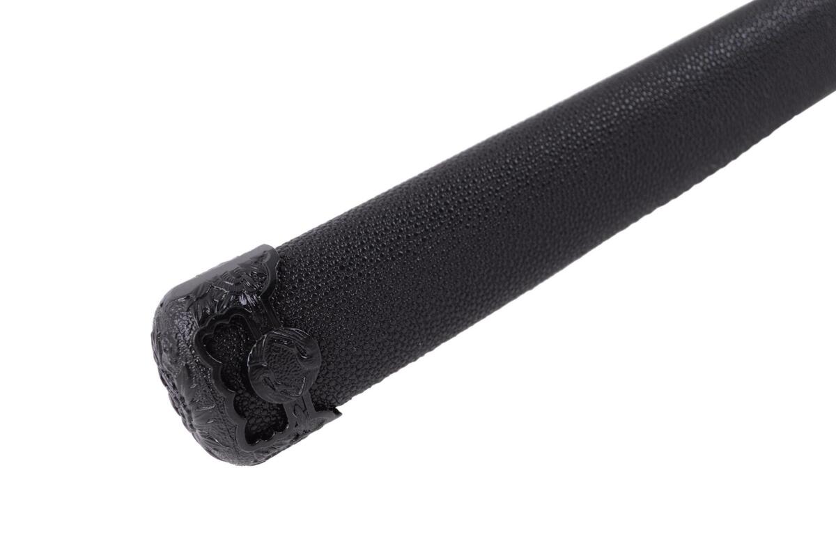 Shen Long, Katana Kokuei er en håndlavet katana tachi i Damaskus stål, ideel til skæretræning og samling. Med en 73 cm skarpsleben klinge, sort flettet Tsuka med gylden Komainu, og lakeret træ Saya med sort rokkeskind hudbeklædning, kombinerer den traditionelt japansk håndværk med et eksklusivt design. Total længde uden Saya: 100 cm.