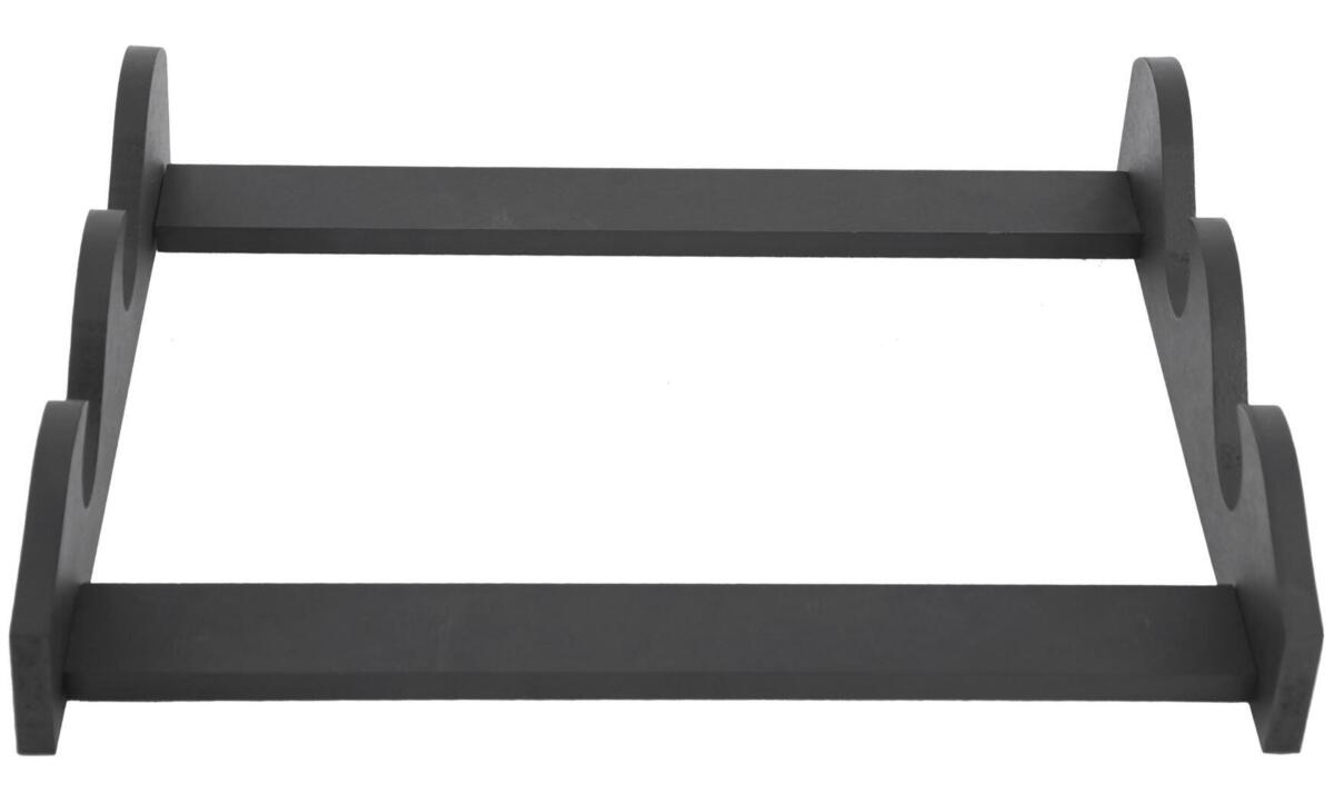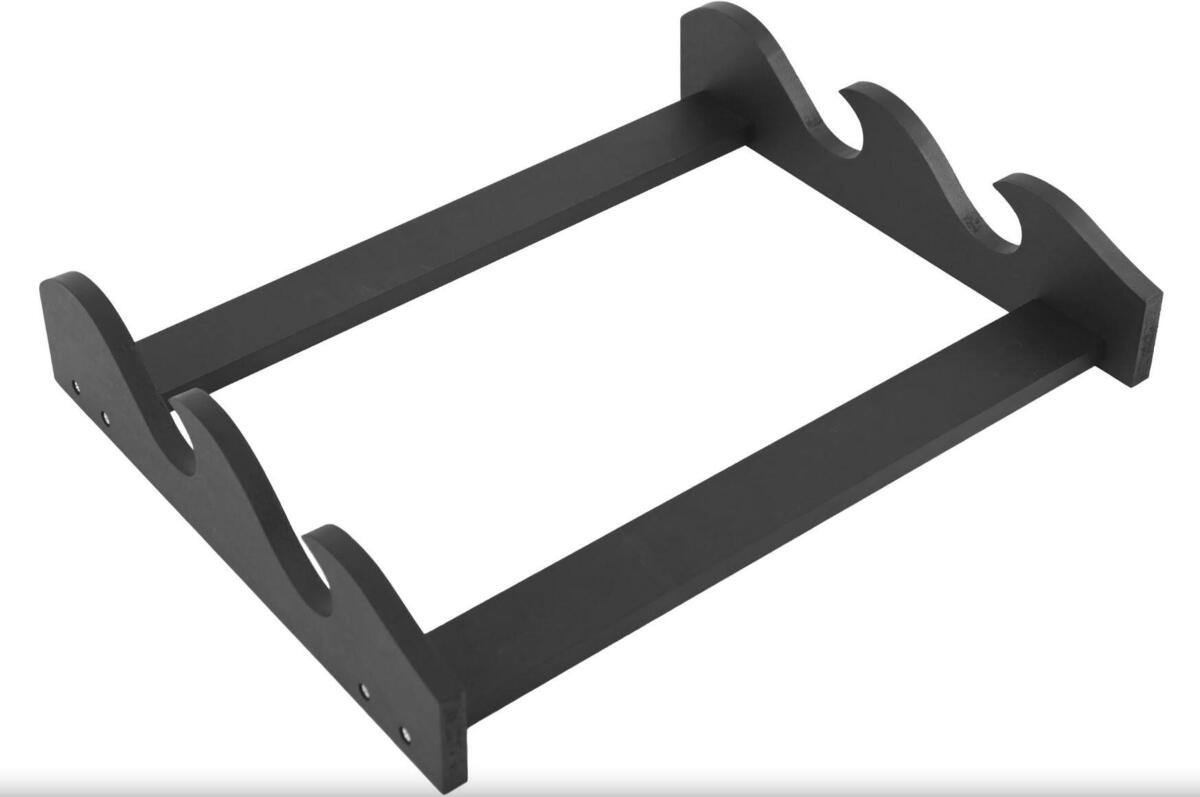 Vægstativ Til To Katana - Elegant vægstativ i mat sort træ til op til to våben (katanaer, sværd, sabler). Let at samle med skruer. Dimensioner: 30 x 39 x 70,5 cm. Robust konstruktion og stilfuldt design. Perfekt til at fremvise din våbensamling.