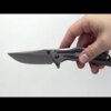 Kniven er udstyret med en bred clip-point klinge i 8Cr13MoV rustfrit stål, kendt for god æg-holdbarhed og nem genopslibning. Den grå titanium carbo-nitride coating giver ekstra korrosionsbeskyttelse og et sofistikeret, mat udtryk. Grebet er fremstillet i rustfrit stål med samme coating og prydet med to carbon fiber-indlæg, som skaber en flot kontrast, når lyset rammer overfladen.
