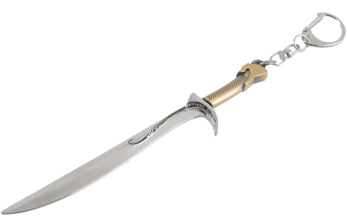 Sølv og guld Metal Fantasy sværd nøglering. med runeindskrifter. Super fed lille gave