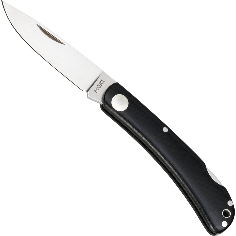 Håndtaget er lavet af Micarta, som ikke blot giver et godt greb, men også en høj grad af holdbarhed og modstandsdygtighed over for fugt og slid. Transitionsdesignet mellem håndtagsskaller og bolster er så glat, at der næsten ikke er nogen mærkbare overgange, hvilket fremhæver Mokis omhyggelige håndværk.