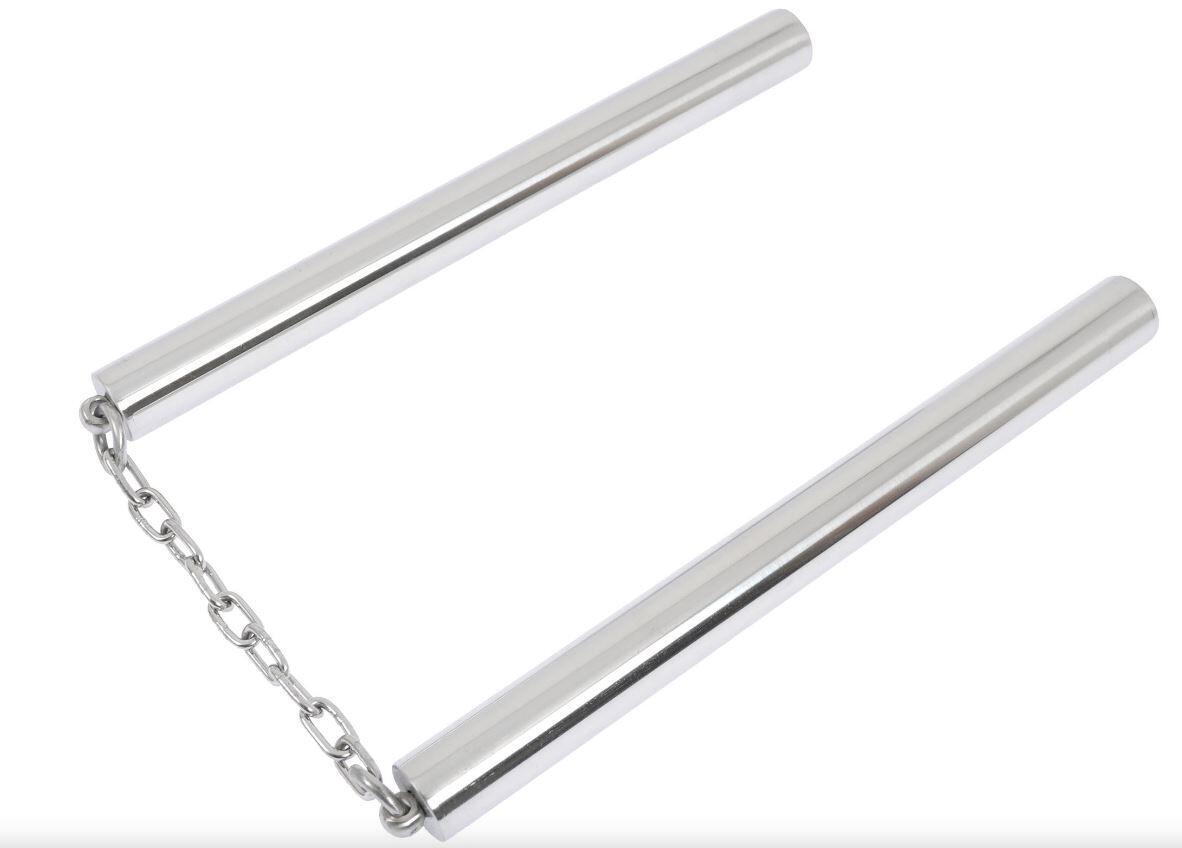 Rustfrit stål nunchaku, ret let takket være dets udhulede rør. Gør det til et godt valg for begyndere, ikke skadeligt.