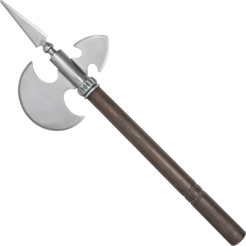 Denne stridsøkse med spyd er inspireret af de kraftfulde våben, som blev benyttet af kavaleri og infanteri i det 15. århundrede. Den korte form gjorde den ideel til nærkamp, hvor den kunne bruges både til hug og stik. Kombinationen af et bredt kulstofstålhoved og et solidt træhåndtag giver øksen en perfekt balance mellem kraft og kontrol.