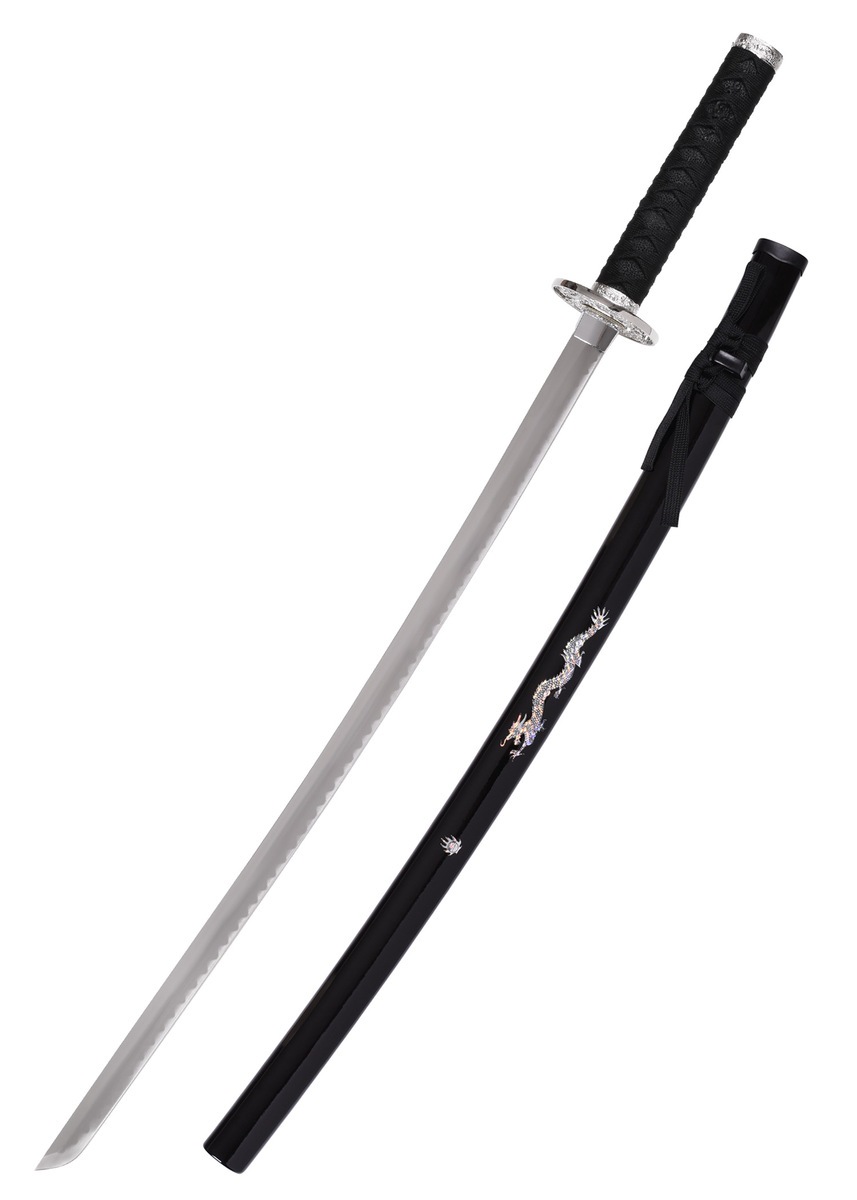 Katana Silver Dragon er en del af Silver Dragon-daisho-serien og matcher perfekt Silver Dragon Wakizashi og Silver Dragon Tanto. Et oplagt valg for samlere, cosplay, dekoration eller som gave til elskere af japansk sværdkunst.